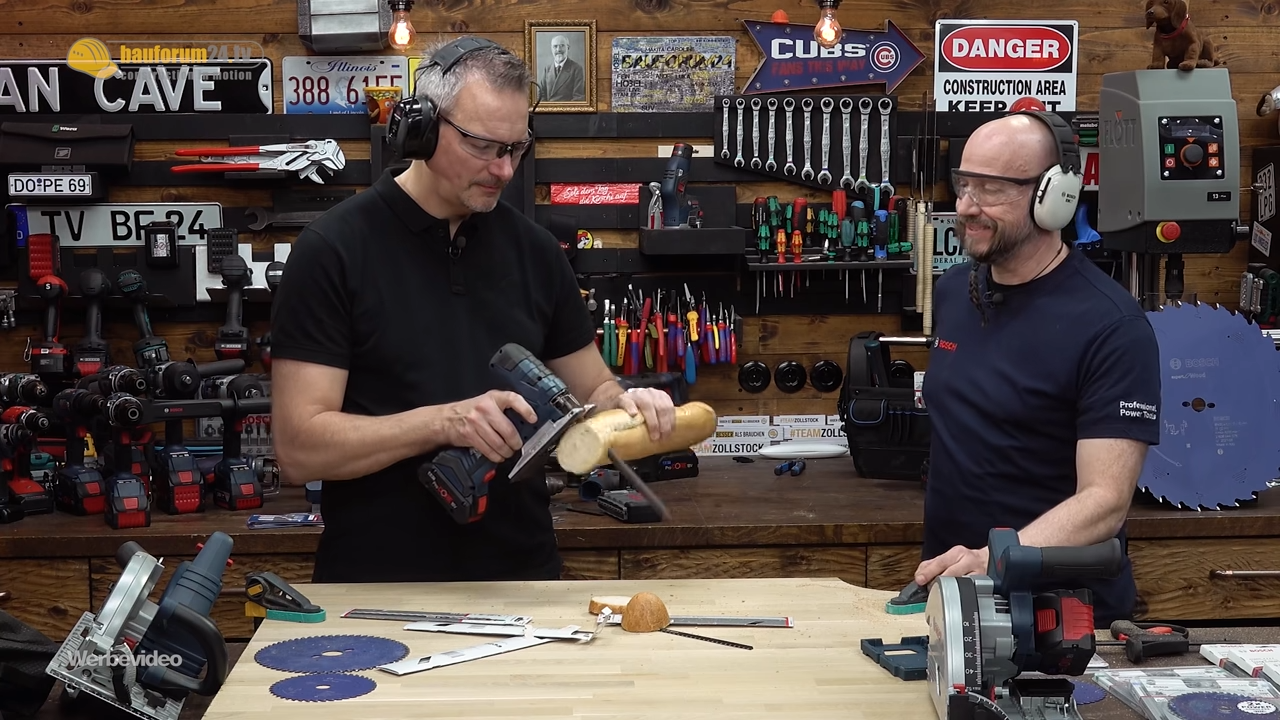 Ein handelsübliches Baguette-Brot schneiden: Keine besondere Leistung für die Bosch Akku Stichsäge GST 18 V-LI S. Aber ein kleiner Schmunzel-Baustein der umfangreichen Medienkooperation, die Jeschenko für Bosch Power Tools realisiert hat.